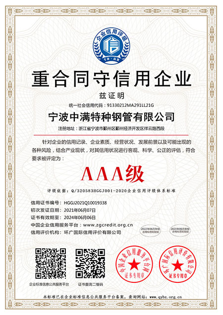 寧波中滿特種鋼管有限公司是一家專業生產精密光亮無縫鋼管、碳結鋼無縫鋼管、合金鋼管、異型鋼管、方管、六角鋼管、無氧光亮退火精密鋼管、汽車零部件用精密無縫鋼管、高壓膠管管芯用精密管。